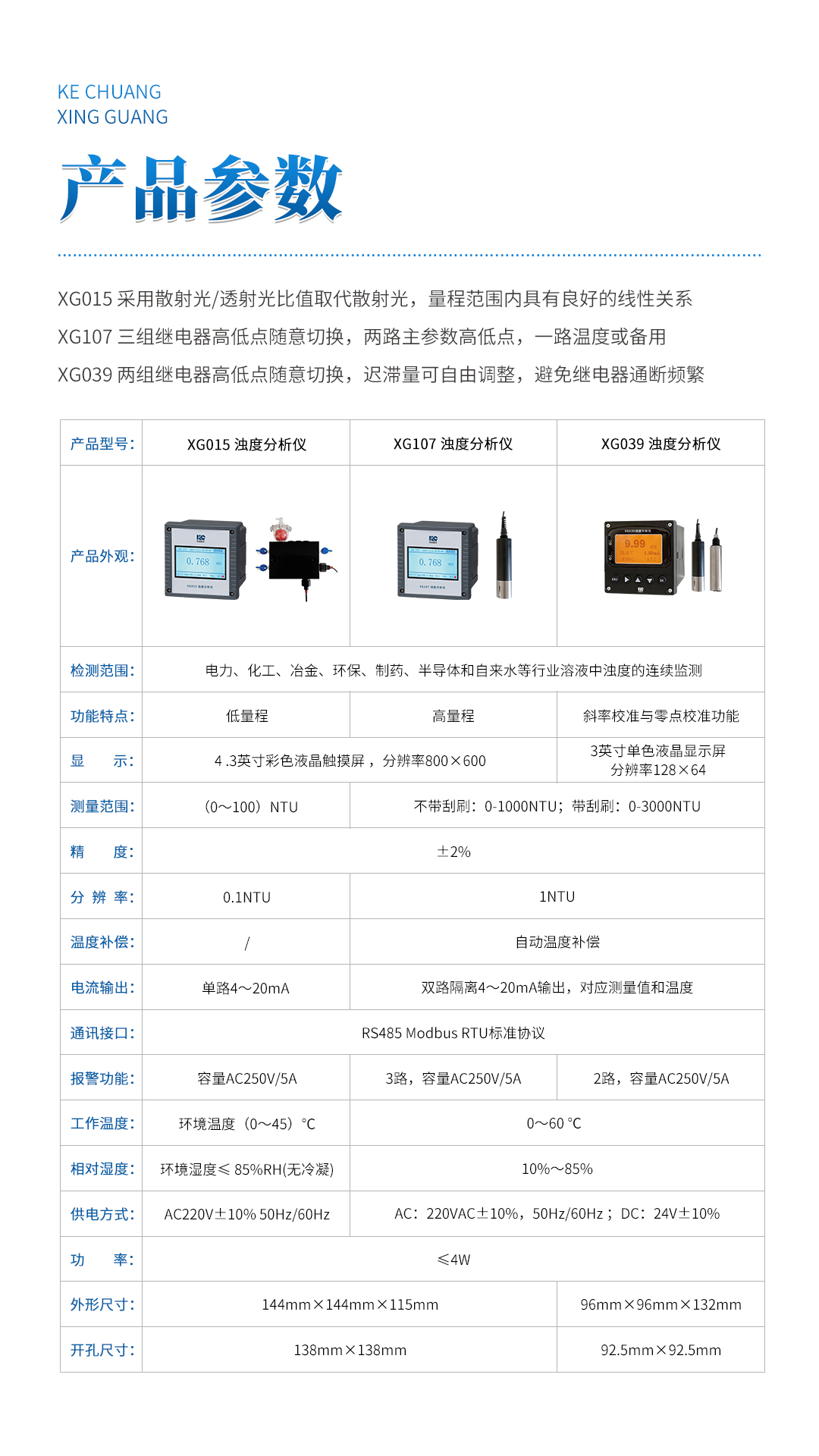 XG015 濁度分析儀(低量程) 產(chǎn)品詳細(xì)介紹