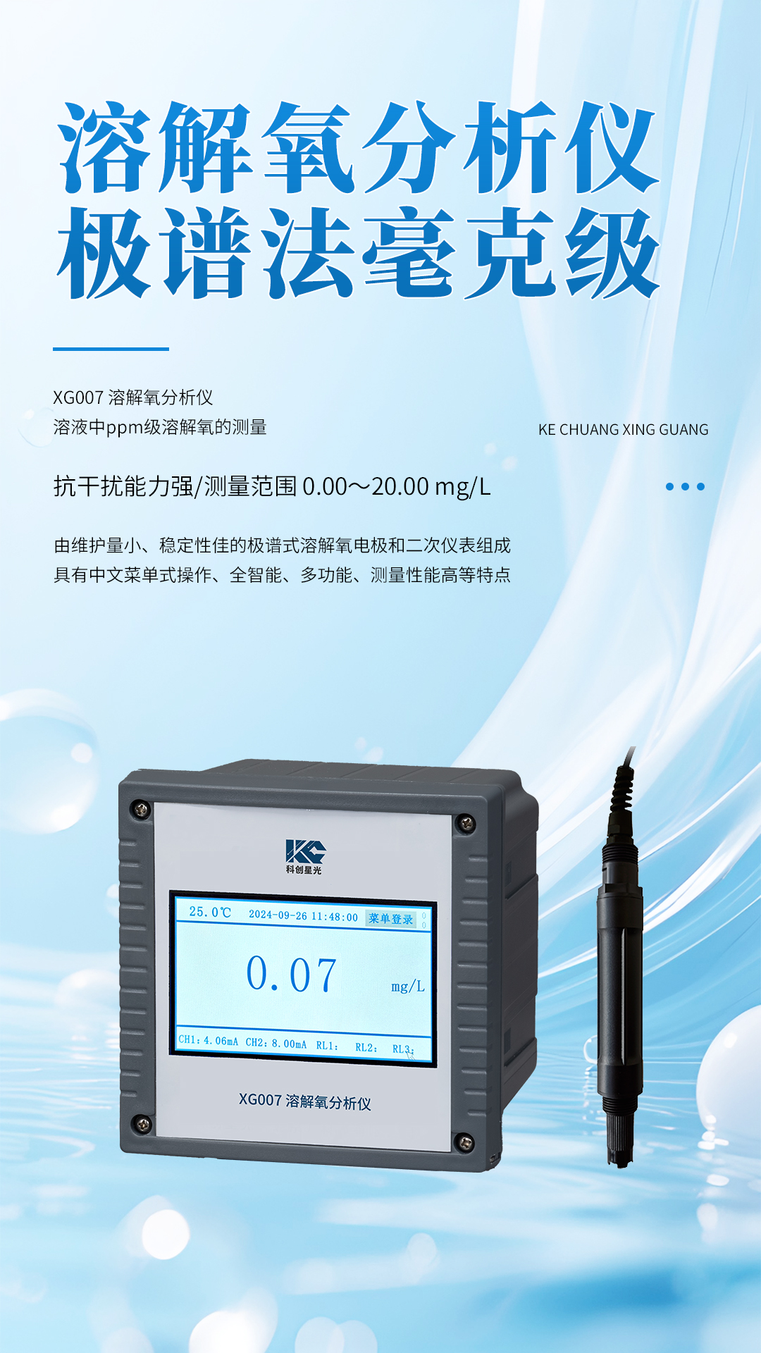 - XG007 溶解氧分析儀(極譜法毫克級)